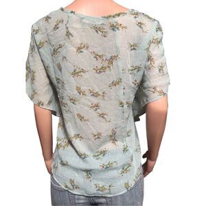 Nwot Light blue floral sheer short sleeve blouse chiffon top scalloped hem