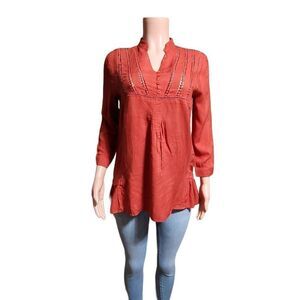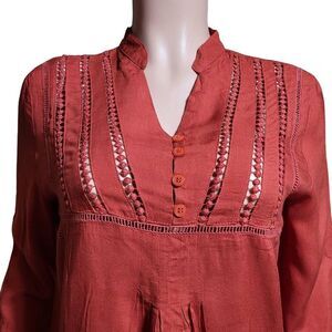 Pulp pin tuck mandarin collar 3/4 sleeve peasant style top M