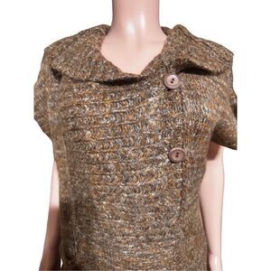 Pulp short sleeve wide placket coffee bean jumper knit pullover sweater M