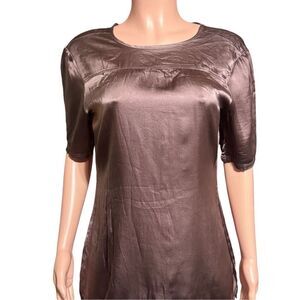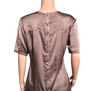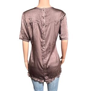 Pulp women button back short sleeve walnut rayon solid blouse M