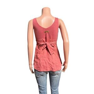 Weekend tank top shirt plain v neck sleeveless with zipper on the side and tight back lace. Mix media tank top Body 100%linen trim 100%cotton