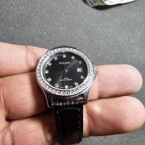 Pulsar By Seiko Crystal Paved Ladies Quartz Wristwatch VJ22-X084 Working shows signs of wear such as light scratches on case and crystal see pictures for reference