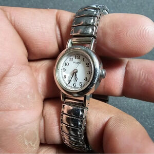 Pulsar By Seiko Ladies Quartz Watch Silver Tone White Dial Working V811-3020 shows signs of wear such as scratches on case band and crystal see pictures for reference