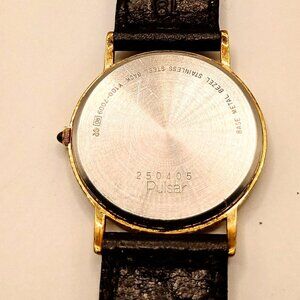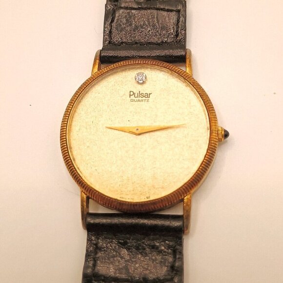 Pulsar Gold Toned Men's Wristwatch with Black Genuine Leather Strap