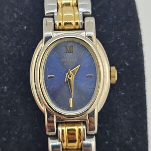Pulsar Women's Watch 16MM Blue Dial Two Tone Bracelet Bands 6" New Battery