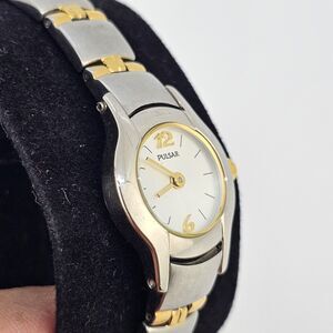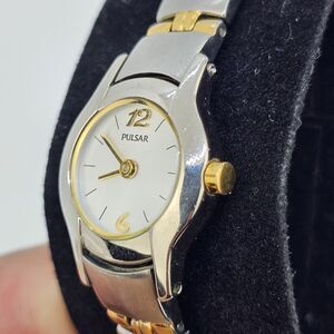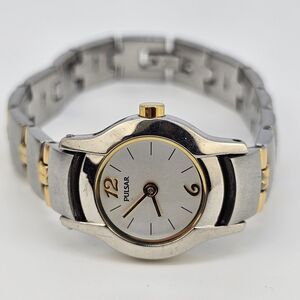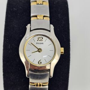 Pulsar Women's Watch 20MM White Dial Two Tone Bracelet Band 6.5" New Battery