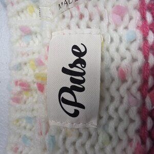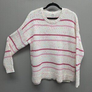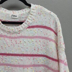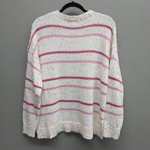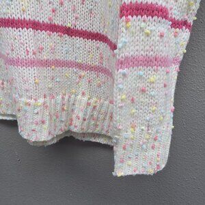 Pulse Sweater Womens Large White Pink Striped Confetti Crewneck Chunky Knit