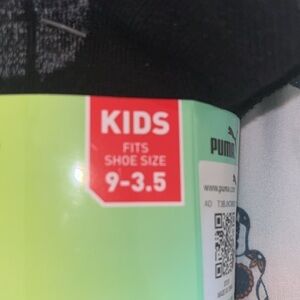 Elevate your child's comfort level with these Puma lowcut socks designed for kids aged 9-3.5. Made of 97% polyester material, these socks feature a smooth toe seam, cushioned arch support, and stay-up cuff to keep them in place. The drycell moisture-wicking technology ensures your child stays cool and dry during travel, school, sports, or everyday wear.