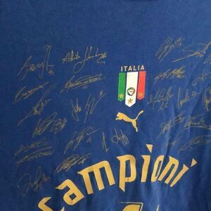 Puma 2006 World Cup Italia CAMPIONI Dell Mondo blue T-shirt size L signatures