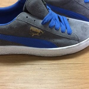 Puma Men's Clyde Suede Platform Low-Top Sneakers, Gray and blue Men's, 7 1/2