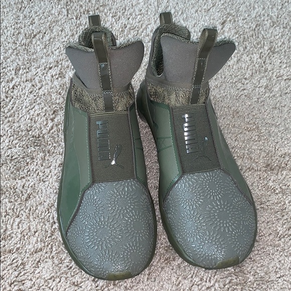 Green flower print and lace pumas . No box . Great condtion.