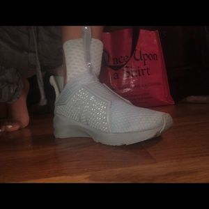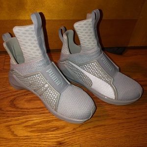 Fenty X by Rihanna women’s high top trainers in the color Quarry. In excellent condition. Worn about 4 times. Size 5.5.. too tight for me truly a beautiful shoe. I would say they run true to size because I am usually a US size 6. In the 5.5 my toe hits the front of the shoe.