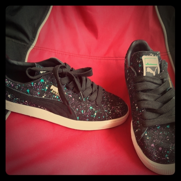 "Allover Splatter" in black suede. Worn lightly twice. Smoke free, pet free home. DO NOT BE AFRAID TO NEGOTIATE ❤️