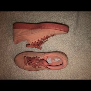 Suede Jr Pumas in the color Desert Flower