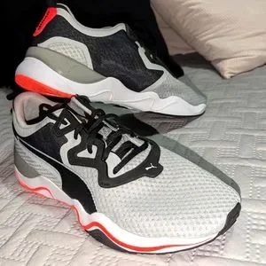 these puma hybrids are brand new. they are comfortable light shoe. package comes without box. both shoes in box (second shoe are as clean as the first if not better.)