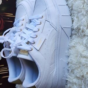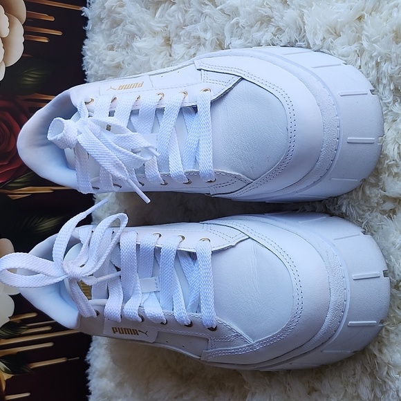 Gold and White Mayze Stacked Pumas. EUC worn only once