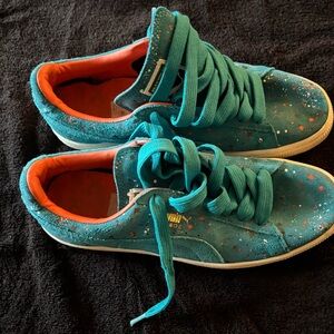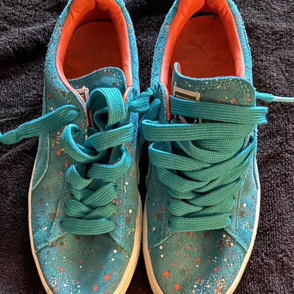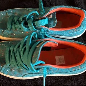 Stylish teal shoes with vibrant laces. Comfortable and trendy. WORN!!!