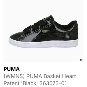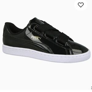 PUMA Basket Heart Patent 'Black' 363073-01 Women’s black patent leather kicks worn once adorable bow shoelaces