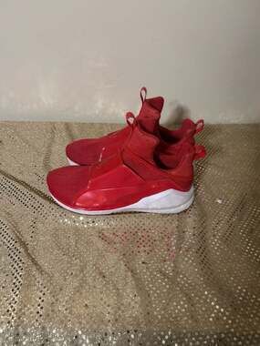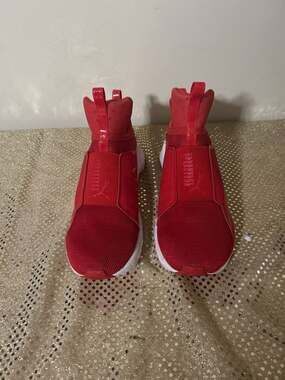 Puma Fierce Core Women's Training Shoes in Vibrant Red. Featuring its signature high-top silhouette and slip-on construction for a sleek, streetwear-inspired look.