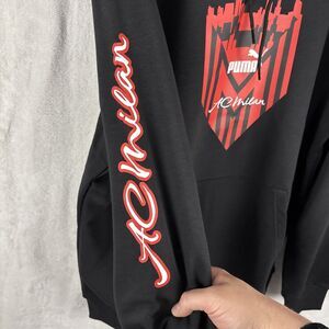 Puma AC Milan Football Icons Hoodie Size Large Black Red NWT