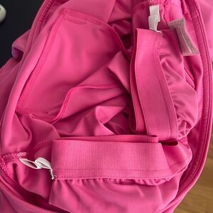 Additional Details: Removable shorts, skirt has fully functional front hip pockets/back slip style pocket/back center split hemline. This is a versatile piece - wear it as a skort, or remove the shorts via two side snaps and wear it as a swim coverup. The shorts can also be worn under a tennis dress.