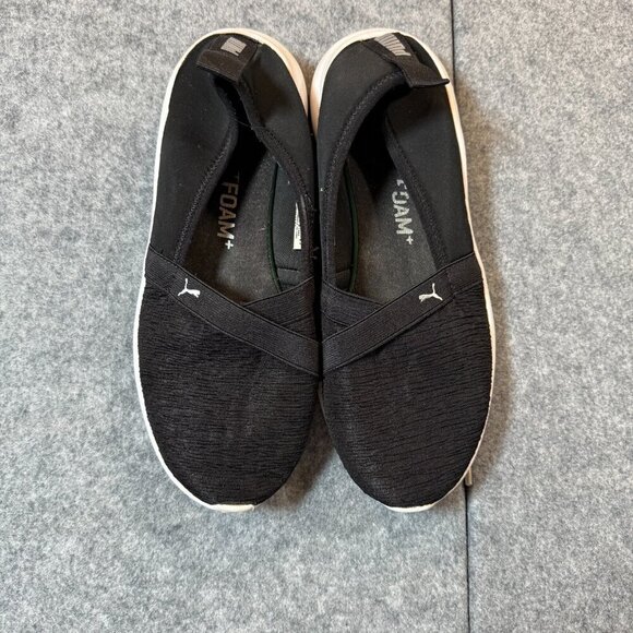 Puma Adelina 369621-01 Womens US 8.5 Sneakers Black Logo Slip On Casual Shoes.