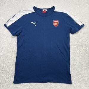 Puma Arsenal FC Gunners Shield Logo Retro T Shirt EPL Soccer Football Blue Sz XL