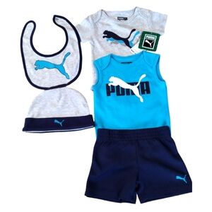 Puma Baby Boys Bodysuit Short Sleeves 3-6 Months Shorts Beanie Bib 5-piece Set