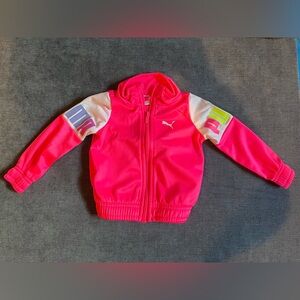 EUC baby girl’s long sleeve track suit with pants. Size 12 months. Last photo shows accurate color in indirect sunlight.