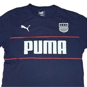 Puma Badge Navy Blue Graphic Logo Short Sleeve T-Shirt Men's Size M