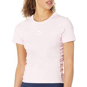 This cute Puma Bae Fitted Tee in Pink Lady will have you looking chic! It features a crew neck, the Puma logo on the chest, and ruche panels down the sides. It's brand new with tags and in excellent condition! Open to reasonable offers through the offer button!