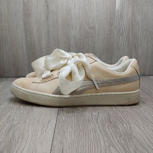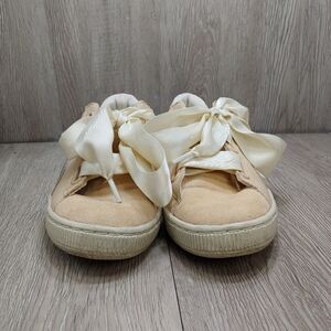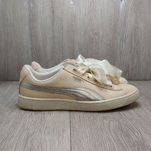 Puma Basket Heart Sneakers Satin Ribbon Laces Light Pink Peach Cream Size 9
