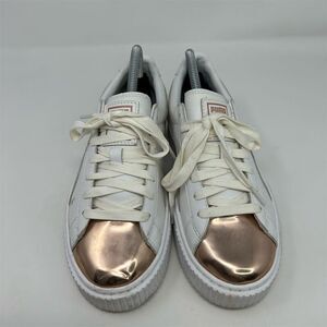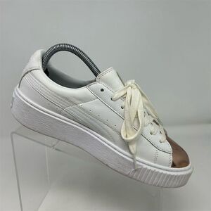 Puma Basket Platform Metallic Rose Cap Toe Women's White Sneakers Size 8.5