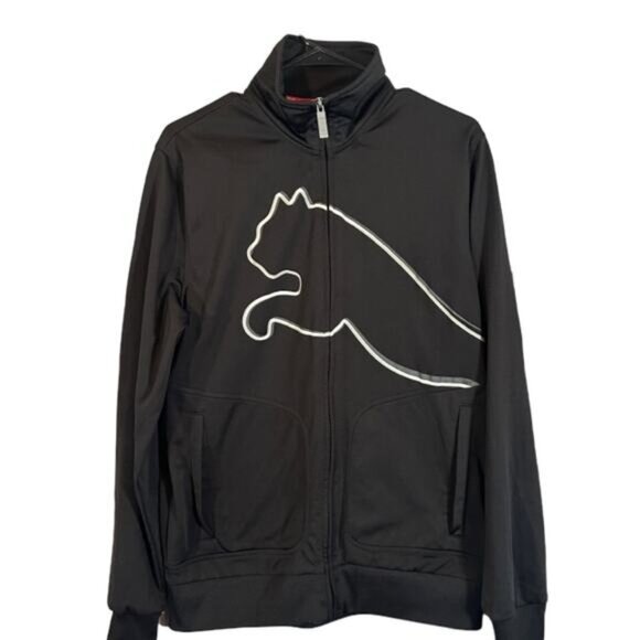 Puma Black Athletic Puma Cat Logo Mock Neck Full Zip Jacket Men Sz M