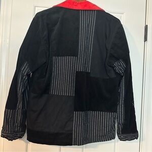 Puma Black Corduroy Patch Jacket with Red Collar and Striped Accents Size Small