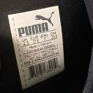 Black Puma size 7 sneakers are super comfortable and easy to get on with pull tabs at tongue and heel. Black mesh upper and removable insole. lightly worn condition.