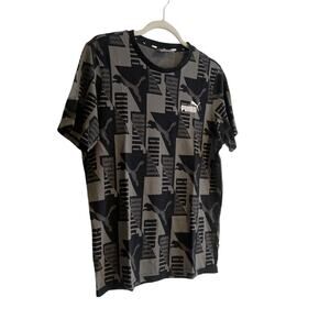Puma Black Gray Power AOP All Over Print Logo Regular Fit T Shirt Size Medium