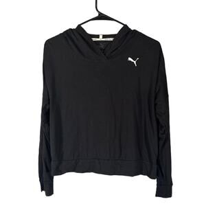 Puma Black Hooded Lightweight Logo Front Cropped Sweatshirt Women Sz S