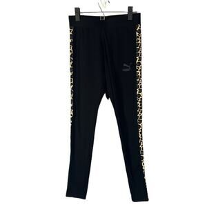 Puma Black Leopard Panel Athletic Casual Running Leggings Women Sz S