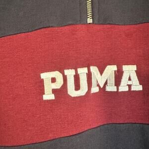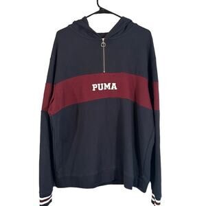 Puma Black & Maroon Two-Toned 1/4 Zip Hooded Pullover Sweatshirt Men Sz L