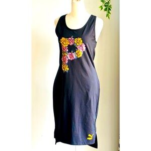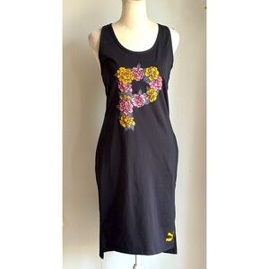 Puma Black Streetwear Bodycon Athletic Dress Racerback Floral Graphic- Medium