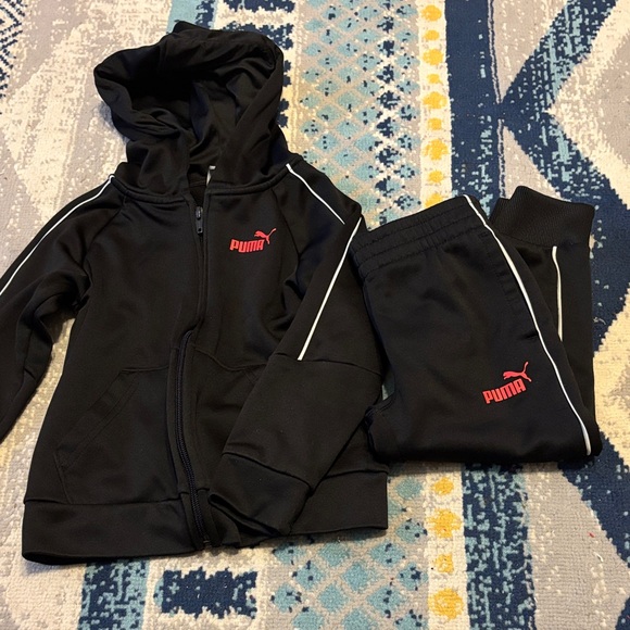 Puma Black Tracksuit with Red Logo. New condition. Full zip-up jacket. Sz.4T.