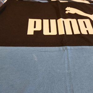 Men's size small. Blue, black and white with colorblocking and camo. Short sleeve. New with tags, never worn. Slight (very hard to see) discoloration in the blue fabric.