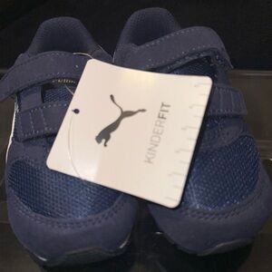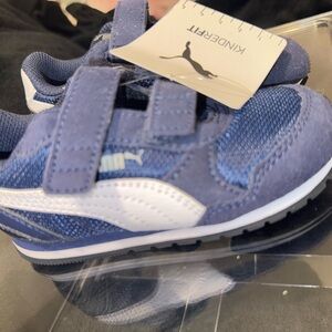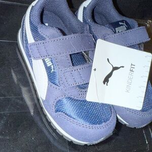 Experience the perfect blend of style and comfort with these Puma sneakers, featuring a breathable mesh and durable suede upper. The blue and white color scheme is complemented by convenient velcro straps for easy fastening. Ideal for both sporty activities and casual outings, these sneakers offer a classic, sporty look.
