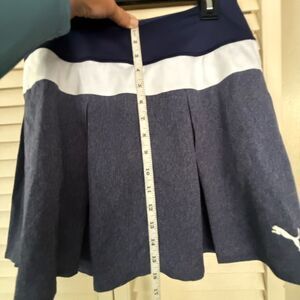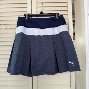 This athletic mini skirt from Puma features a stylish skater design with pleats, perfect for active occasions. The skirt showcases a striking blue and white color scheme, with a comfortable waistband and a performance fabric ideal for sports. Its flared silhouette adds a touch of flair to your athletic wardrobe.