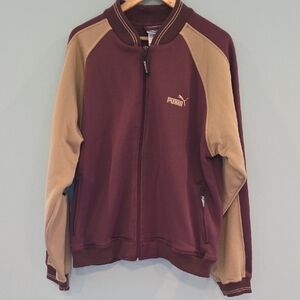 Puma Bomber Jacket Retro Style Sweatshirt Jacket Men's Large Brown and Tan