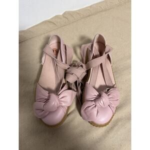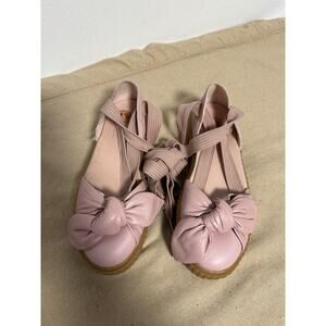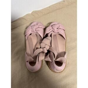 Puma Bow Creeper Sandals Womens Size 7.5 Pink Ankle Wrap Ribbon Gum Sole