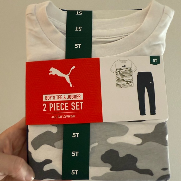 Puma Boys' White and Gray Camo Tee and Jogger Set