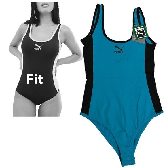 Puma Women’s XS Classic Bodysuit Scoop Back Blue Black Casual Sporty.