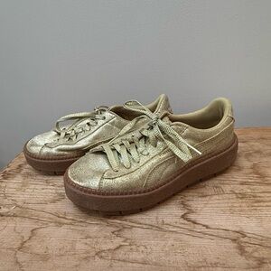Classic Puma platform sneakers in glitter gold. Size women’s 7. See photos for any signs of wear.